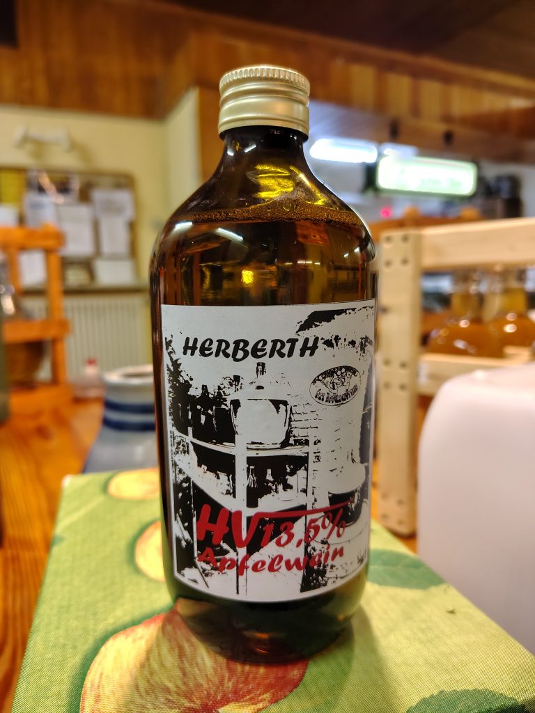 Bis man den „perfekten“ Apfelwein im Glas hat braucht es ein paar Versuche – aber was heißt schon „perfekt“? In der Runde der Herstellenden ist man sich grundsätzlich einig: der beste Schoppe steht im eigenen Keller. Da weiß man was man hat, was drin ist, wie er hergestellt wurde, welche Zusätze es gab, wie die Gärung verlief und vor allem: wieviel Arbeit in das Werk geflossen ist. Die Äpfel wollen geerntet, gewaschen, gemaischt und gepresst werden. Das kann man delegieren, also an eine Kelterei übergeben, doch der ehrgeizige Hobbyist möchte alles unter Kontrolle haben. Somit steht man selbst auf der Obstwiese, am Waschzuber, an der Obstmühle und -presse. Ist der Saft erst einmal im Keller hört die Arbeit nicht auf: Regelmäßige Kontrollgänge in den Keller zur Begutachtung des Gärverlaufs sowie der Entnahme von Proben gehören zum Pflichtprogramm. Es soll Kelter:innen geben, die befinden sich in den 10 Wochen vor Weihnachten fast ausschließlich im Keller – so eine Qualitätssicherung, am besten im Freundeskreis, muss ernstgenommen werden 😉