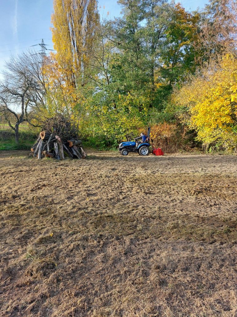 Schon vor einiger Zeit war einer der sehr alten Apfelbäume auf unserer Obstwiese umgefallen. Drumherum entwickelte sich ein so nicht gewünschter Wildwuchs, welcher sich regelmäßig in das schlechte Gewissen drängte: „Wir müssen da mal ran“.