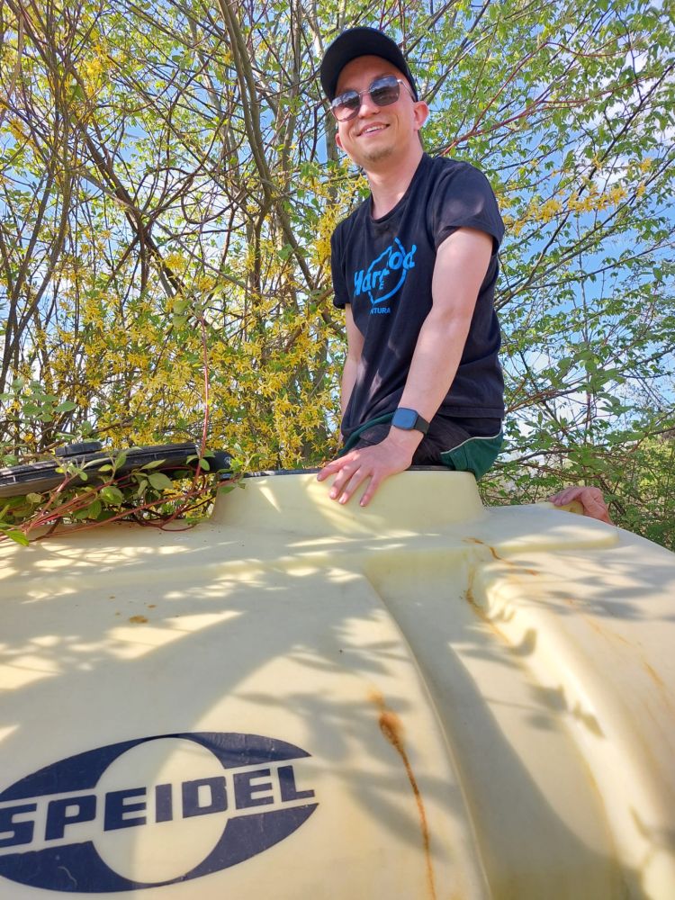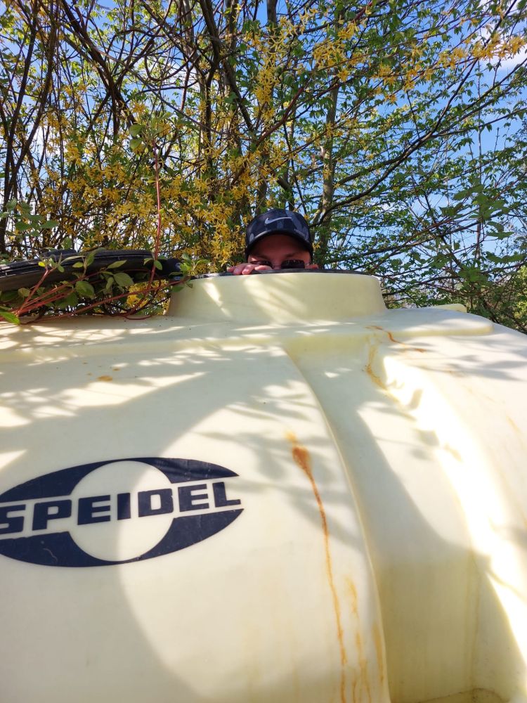 Und da man ohnehin schon aktiv ist wurde auch gleich das neue 2.000L Regenfass abgedichtet und angeschlossen. Der Sommer kann kommen!